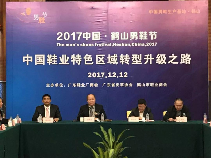 2017年12月12日,鹤山首届男鞋节在鹤山公园南广场举办。这是一场制鞋行业的盛会,吸引着鹤山本地及省内外100多家制鞋企业参加展出交流,共促行业发展。应鹤山鞋业商会邀请,商会常务副会长杨鹏、副会长陈如辉、秘书长林育明等代表商会出席鹤山首届男鞋开幕式,并参加“中国鞋业特色区域转型升级之路”高峰论坛会议。