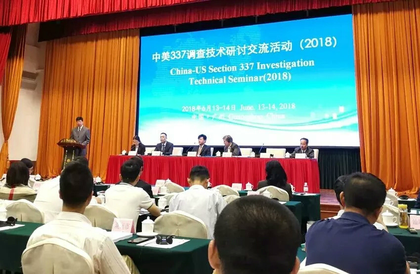 018年6粤13--14日,商会派员参加广东省商务厅举办的2018中美337 调查技术研讨会,了解我省商务主管部门、商会、行业协会和企业应对国际贸易摩擦的能力,妥善应对美国 337 调查应对工作,普及337 调查相关知识,增强企业知识产权抗风险能力。研讨美国 337 调查规则的最新发展,关注美国国际贸易委员会在 337 调查过程中的新做法,研究应对工作面临的新情况、新问题和新挑战;交流应对 337 调查工作经验做法。