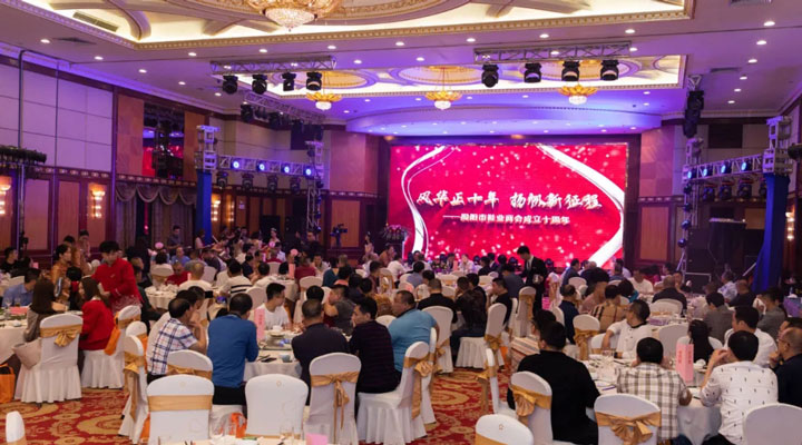 会员大会后,隆重举行了商会成立十周年庆典活动。中国塑料加工工业协会朱文玮理事长,揭阳市工商联党组书记林少光,榕城区政府郭翔区长,市工信局、商务局、税务局等相关部门的领导,广东鞋业厂商会、福建晋江市拖鞋联盟和揭阳市各兄弟商协会的领导、嘉宾及全体会员200多人出席盛会。