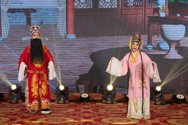 庆典活动举行了隆重的文艺晚会。晚会节目丰富多彩,有歌舞、独唱、魔术丶杂技、器乐演奏、潮剧选段,有专业团队的精湛演出,也有会员及会员子女的献艺表演。精彩的节目表演令人眼花缭乱,不时博得阵阵掌声。